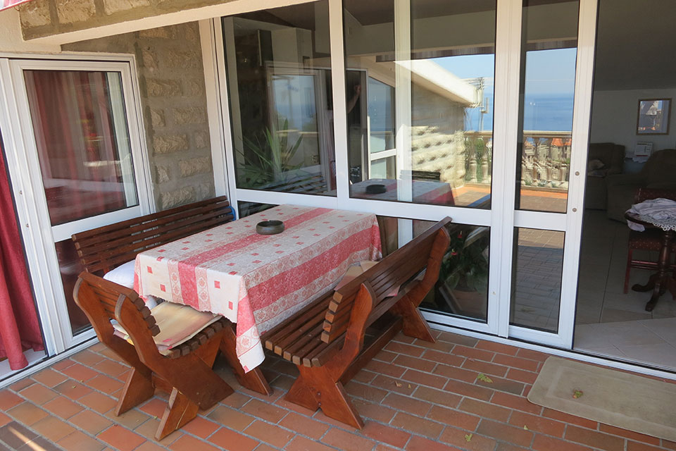 Shower Air Conditioning Radio Refrigerator Desk Seating Area Fan Dishwasher Patio bathroom Heating Satellite Channels Kitchen Carpeted Flat-screen TV Sofa Tile/Marble floor Hardwood/Parquet floors Dining area Electric kettle Kitchenware Wardrobe/Closet Oven Stovetop Sea view Terrace Dining table – sits 6 Outdoor furniture Outdoor dining area